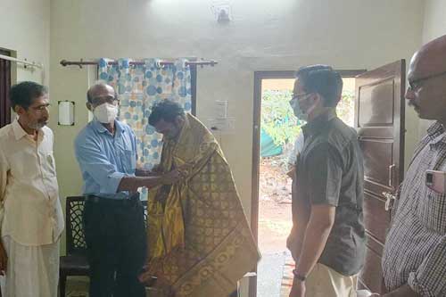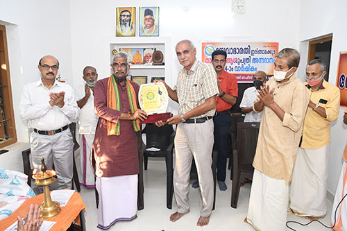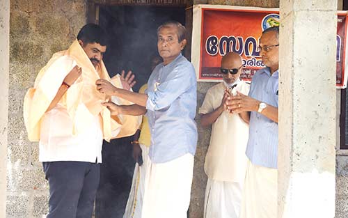 ശ്രീ അനിയനെ സേവാഭാരതി എക്സിക്യൂട്ടീവ് അംഗവും റിട്ട് എഞ്ചിനീയറുമായ രാധാകൃഷ്ണൻ പൊന്നാടയണിയിച്ചു ആദരിച്ചു.