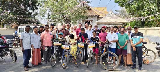സൈക്കിൾ യാത്രക്ക് ഇരിങ്ങാലക്കുട ശ്രീ കൂടൽമാണിക്യം കിഴക്കേ ഗോപുര നടയിൽ സ്വീകരണം നൽകി