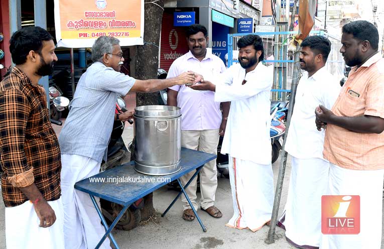 ഠാണാവിലും ഗവ: ആശുപത്രിക്ക് മുന്നിലും ഇരിങ്ങാലക്കുട സേവാഭാരതി കുടിവെള്ള വിതരണം ഏർപ്പെടുത്തി