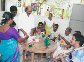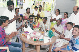 Mentally challenged students and teachers with Shri M.K. Gopan at Swashraya Nilayam.